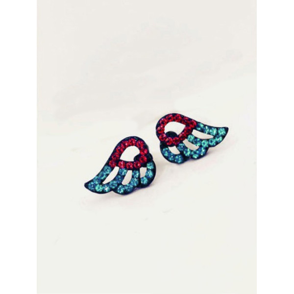 E-3026 Fashion Black Metal Blue Red Rhinestone Angel Wing Stud Earrings