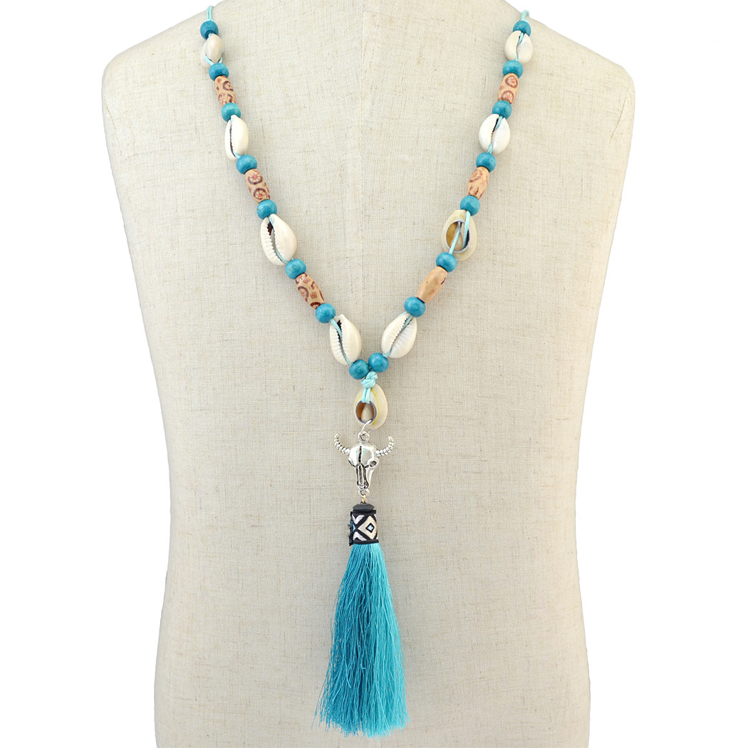 Product;Bohemian Vintage Rope Natrul Shell Wood Beads Pendant Necklace Jewelry