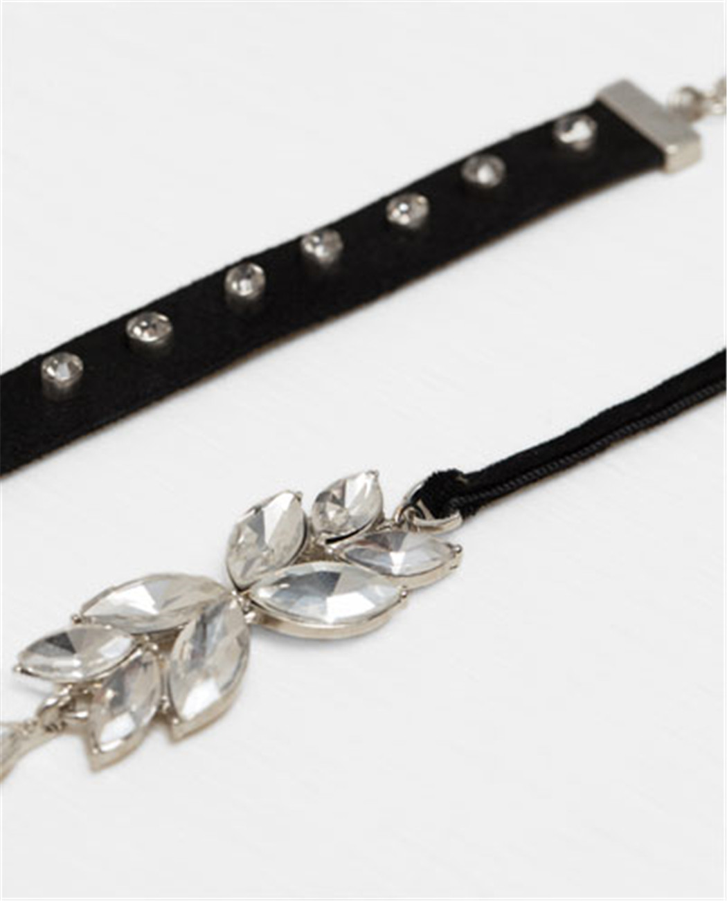 Product: bohemian vintage style black leather chain crystal pendant collar necklace for women jewelry