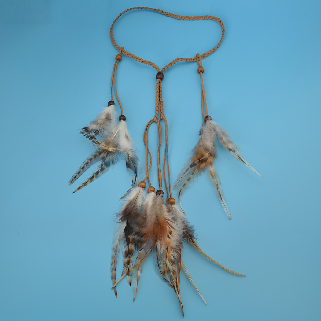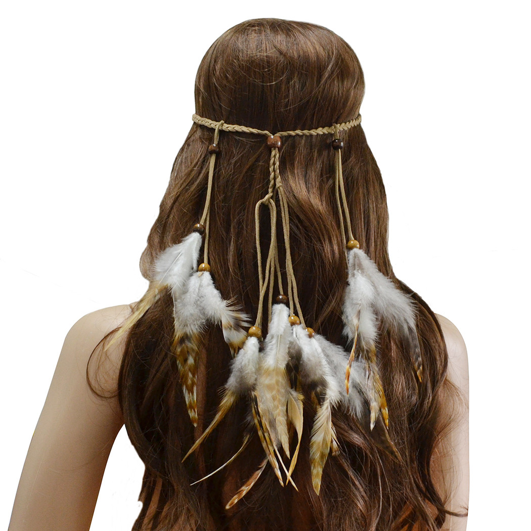 Product : New Fashion Handmade Ethnic Tribal Gypsy Rope Wood Beads Feather Hairband Hair Clip Women Jewelry