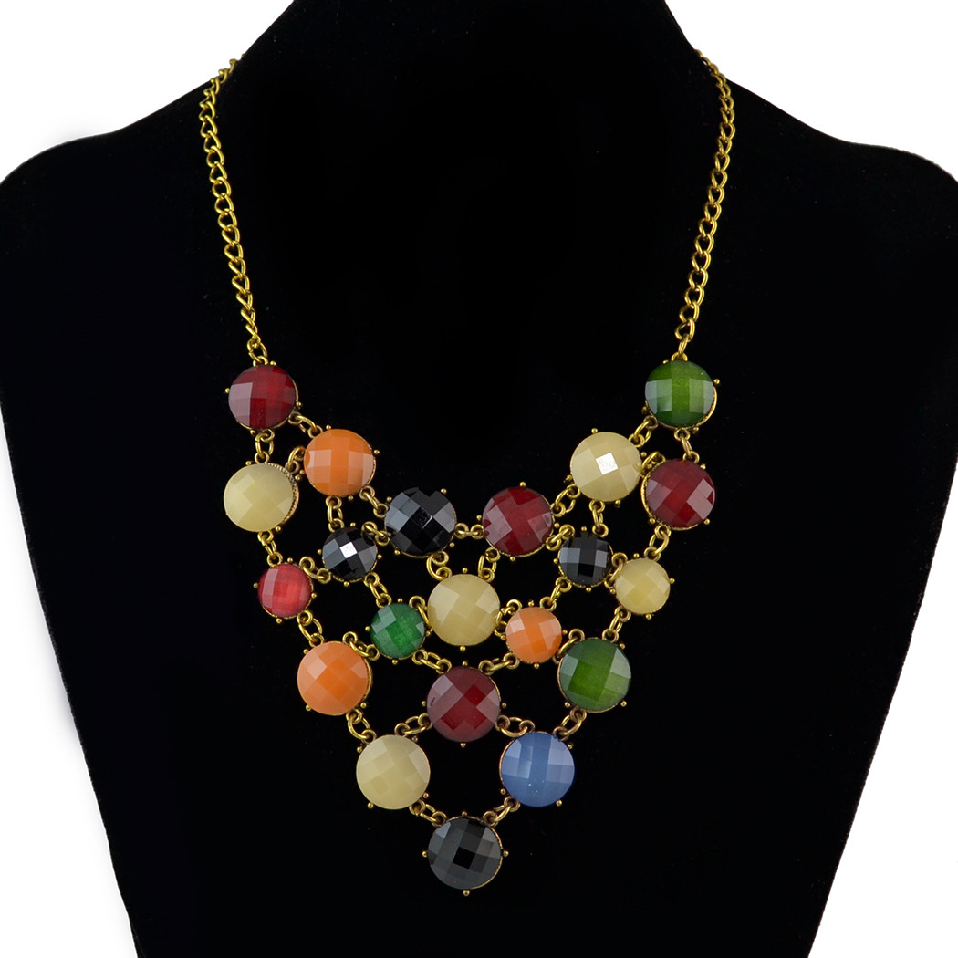 Name:Trendy Bohemian Acrylic Bead Gold Alloy Chain Pendant Necklace For Women Jewelry