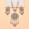 Product:Bohemian Turquoise Tassel Necklace Earring Set for Women Girls Party Jewelry