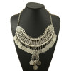Product:Gypsy Bohemian Beachy Chic Statement Necklace, Boho Festival Silver, Fringe Bib, Coin, Ethnic, Turkish, India, Tribal,;