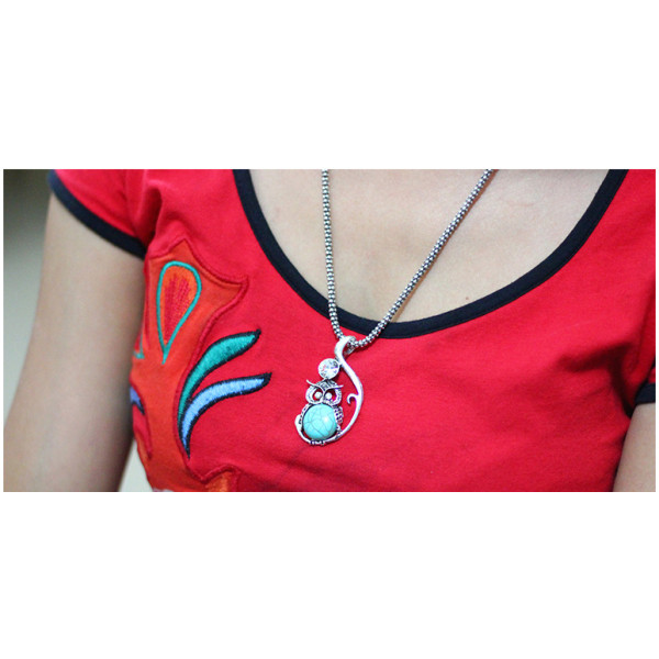 Product: Bohemian New Fashion Women Long Chain Crystal Turquoise Owl Pendant Necklace