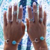 Product: 6 Pcs/set New Fashion Bohemian Style Silver Plated Design 6 Types Natural Turquoise Moon Shape Nail Rings for Women jewelry