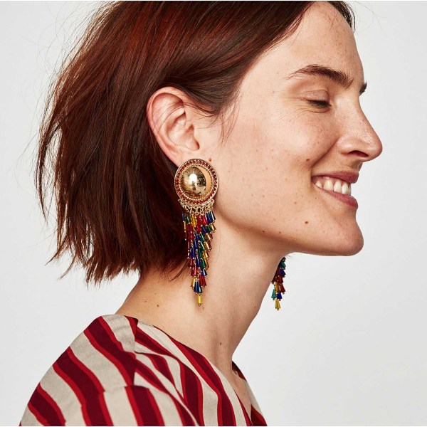 Product: 5 Colors Gold Plated Round Rhinestone Acrylic Beaded Tassel Drop Earrings Jewelry Accessories