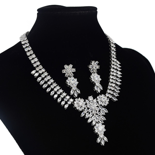 Product : Elegant 3A Zircon Bride Weeding Party Necklace Earring Jewelry Set
