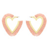 E-4716 Ethnic Heart Shape Cotton Thread Tassel Drop Earrings for Women Boho Wedding Party Jewelry
