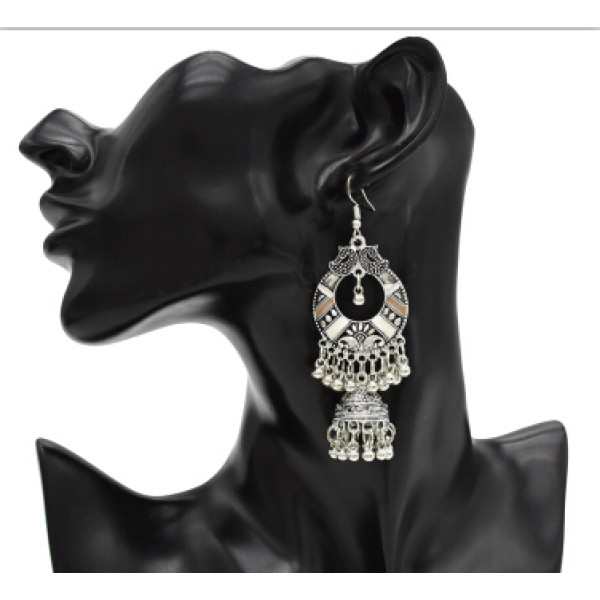 E-4792 6 Colors Boho Silver Metal Bells Statement Drop Dangle Earrings for Women Festival Party Jewelry