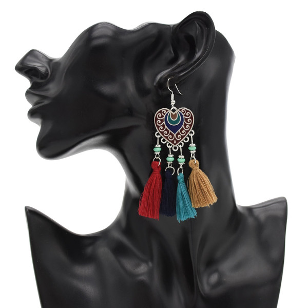 Product : 5 Colors Trendy Alloy Tassel Heart Drop Earring For Women Jewelry Design