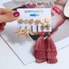 E-5246 6 Pairs/Set Boho Gold Metal Leaves Shape Pearl Drop Earrings Sets for Women Party Jewelry