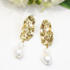 E-5514 Baroque Vintage Earrings Fashion Antique Alloy Leaf Irregular Simulated Pearl Charm Earrings for Woman pendientes mujer