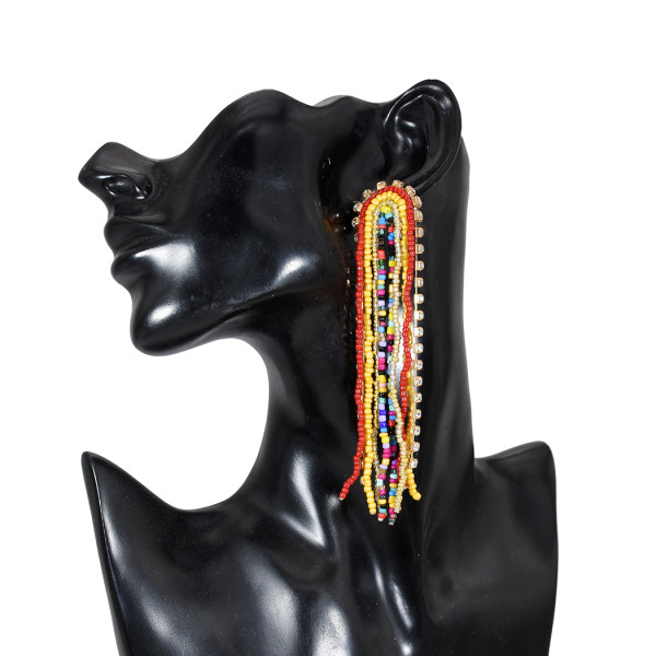 E-5724 Bohemian Big Rhinestone Resin Beads Long Tassel Drop Earrings for Women Statement Party Jewelry