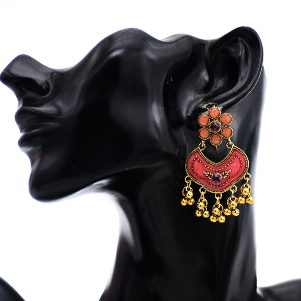 Product:Bohemian style glaze with diamonds golden tassels flower retro earrings female gift jewelry