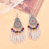 E-6632 Fashion Ethnic Silver Alloy Red Green Colorful Acrylic Beads Silver Leaf Tassel Dangle Earrings