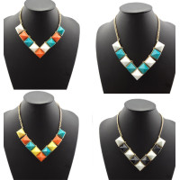 N-4258 New Fashion Gold Tone Chunky Gem Stone Pyramid Stud Choker Bib Necklace