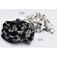 C-0067 New Coming Print White Black Crown Skull Chiffon Scarves Shawl