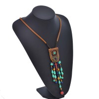 N-8016 Tibetan Ethnic Leather Turquoise Pendant Necklace Bohemian Traditional Clothing Choker Jewelry
