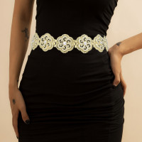 N-8079 Fashion Women Hollow Gold Flower Belly Chain Waist Chain Clear Crystal Rhinestone Alloy For Women Party Dance Jewelry Accessories