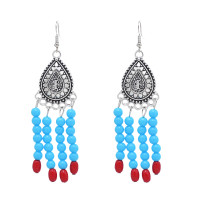 E-6585-BL/RE Vintage Tibetan Earrings Ethnic Bead Tassel Dangle for Women Girl Vacation Party Festival Jewelry Gift