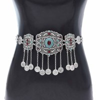 N-8089 Fashion Gypsy Silver GOLD Alloy Coin Tassel Red Crystal Blue Resin Beads Belly Body Chain Waist Chain Body Jewelry