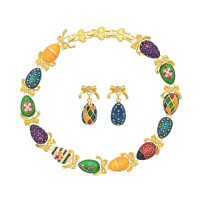 N-8313 E-6728 Vintage Style Court Baroque Necklace Earring Jewelry Sets Multi Color Eggs Bow-knot Choker