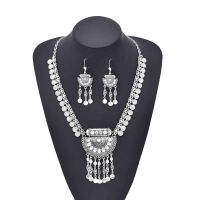 N-8435 2 Styles Silver Hollow Flower Crystal Necklace Earrings Set Middle Eastern Ethnic Clothing Jewelry Set