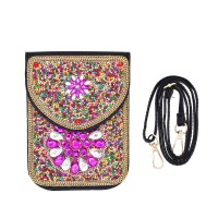 N-8442 Colorful Beads Leather Crystal Flower Crossbody Shoulder Bag