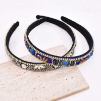 B-1229 Blue Gray Beige Pearl Turquoise Rhinestone Chain Headband for Women Girls
