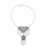 N-8453 Vintage Tribal Tibet Silver Gypsy Charms Tassel Necklace Women Pendant Necklace