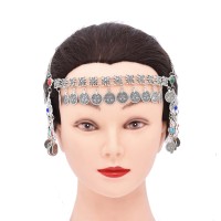 F-1234 Retro Silver Coin Tassel Forehead Chain Bohemian Pendant Headpiece Hair Accessories