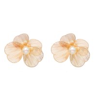 E-6778 Flower Women Clips Earrings Baroque Elegant Pearl Alloy Hollow Earrings