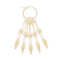 B-1347 Gold/Silver Ethnic Indian Alloy Skeleton Dance Fingertip Metal Hollow Long Chain Pull Finger Bracelet